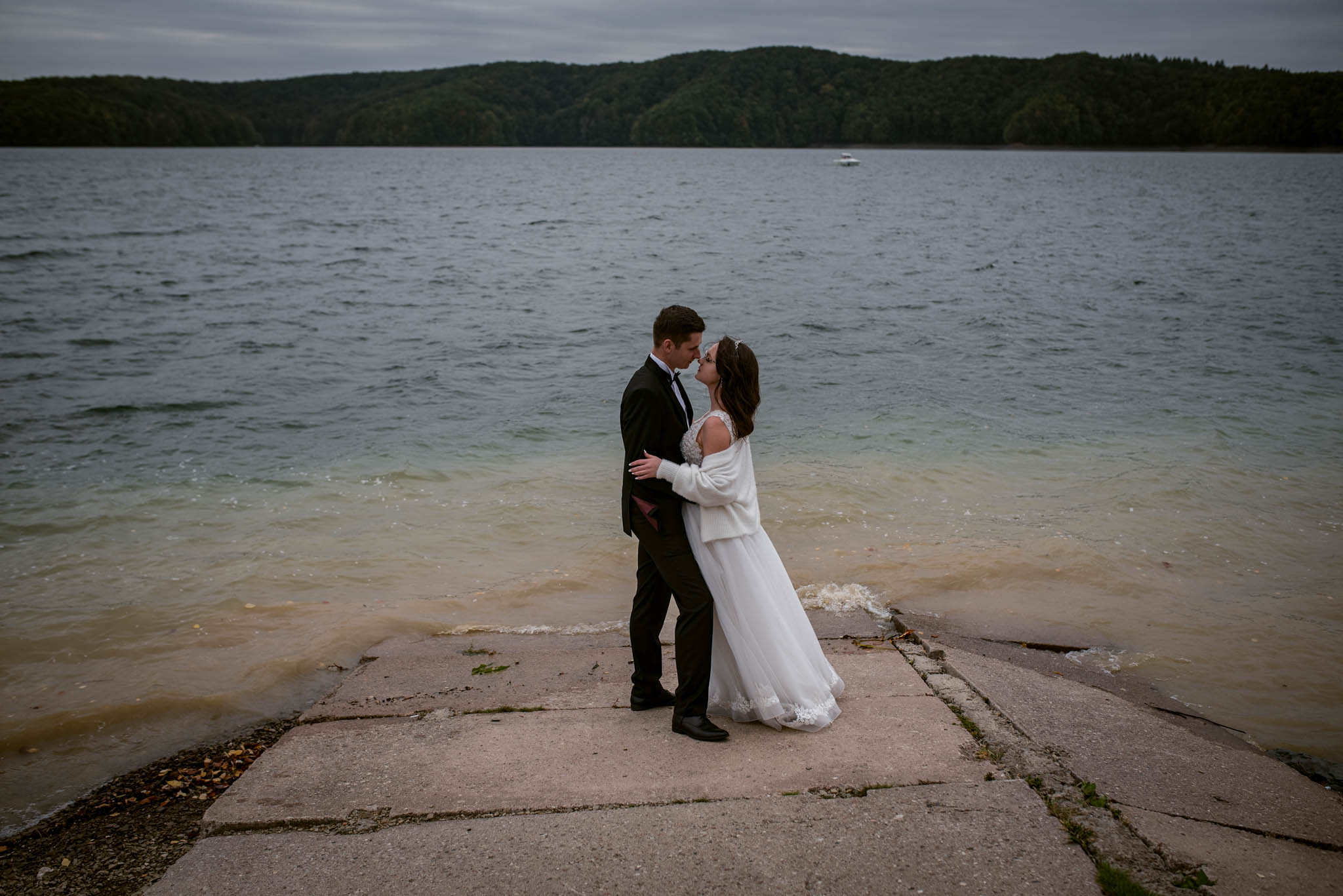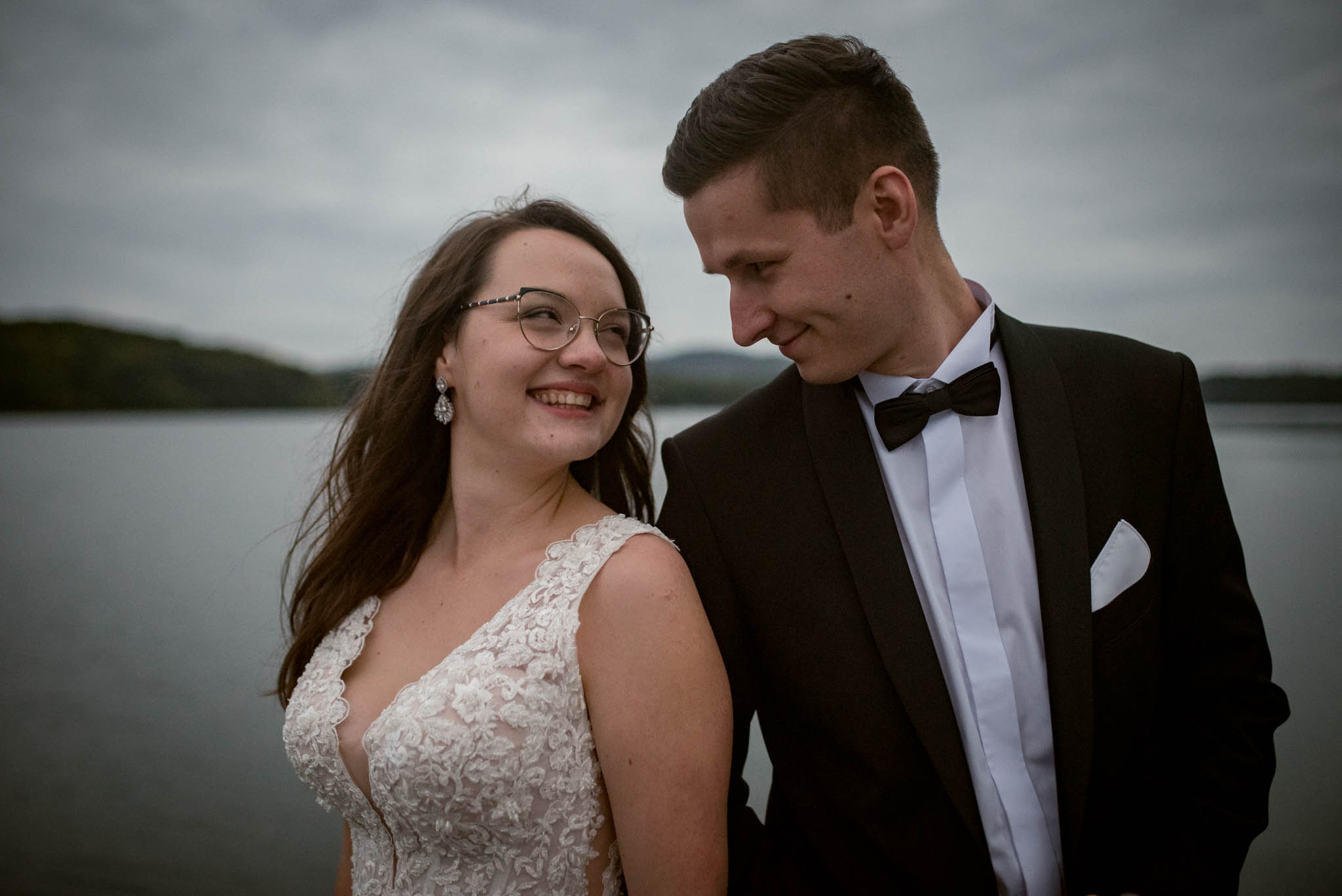 Kamila: Nasza sesja zdjęciowa odbyła się nad Soliną. Jest to dla nas wyjątkowe miejsce, mamy z nim wiele wspomnień i czuliśmy, że chcemy właśnie tam zrobić nasze zdjęcia. 🙂 Super, że to się udało. Nie zabrakło wtedy też śmiesznych momentów, chociażby takich, że wracając w sukni ślubnej i garniturze byliśmy w McDonaldzie. 😀