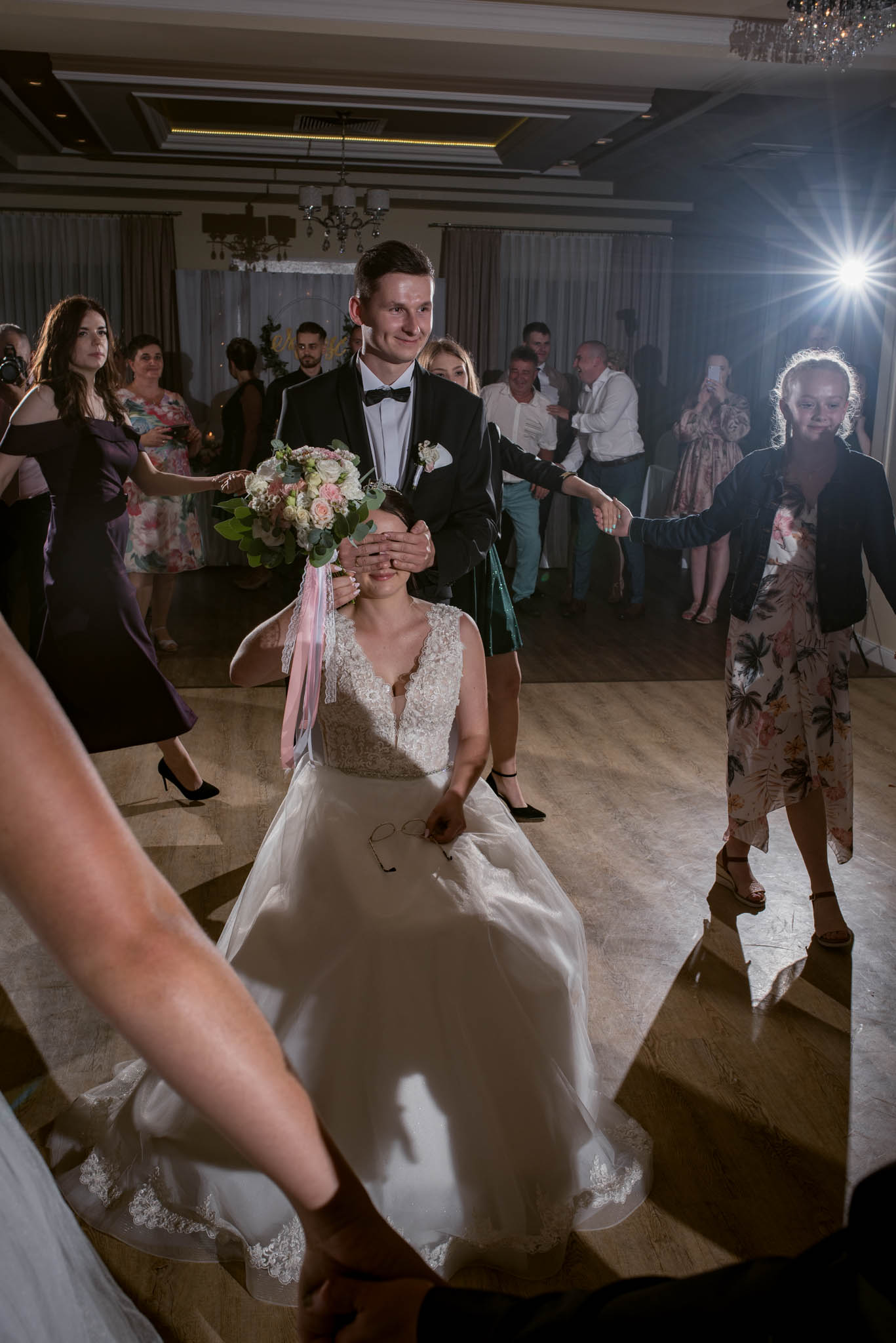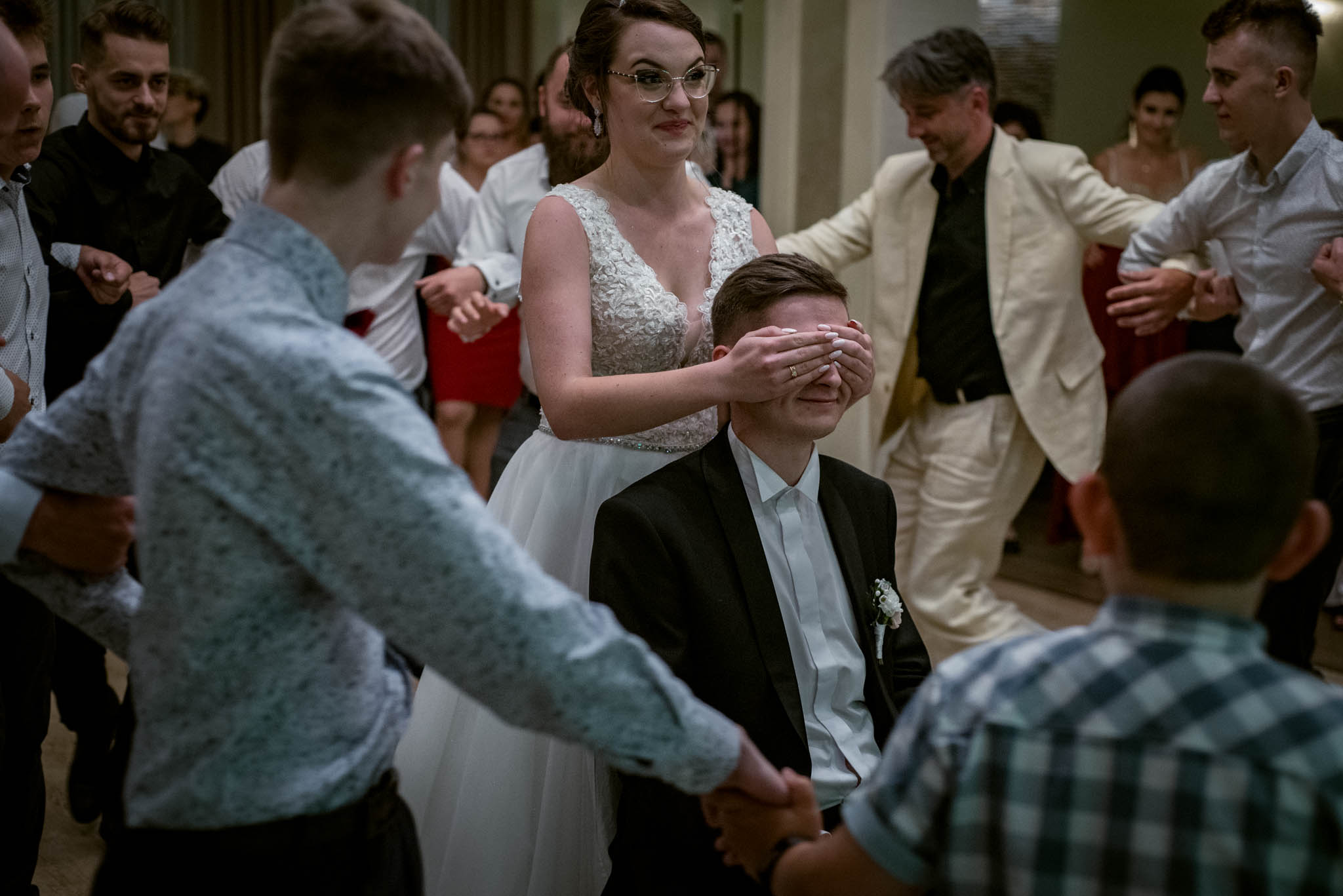 Kamila: W naszym regionie jedną z najważniejszych tradycji na weselu są odgrywki. Polega to na tym, że po obiedzie, podczas gdy goście są częstowani deserem/tortem i siedzą przy stolikach, drużba/wodzirej razem z Parą Młodą, orkiestrą i drużbiną (najczęściej jest to kobieta z bliskiej rodziny bądź świadkowa) podchodzą do każdego gościa po kolei, przedstawiają go z imienia i śpiewają o nim krótką przyśpiewkę (np. na temat jego pracy, kim jest dla Młodych itp.) w dość żartobliwy sposób.